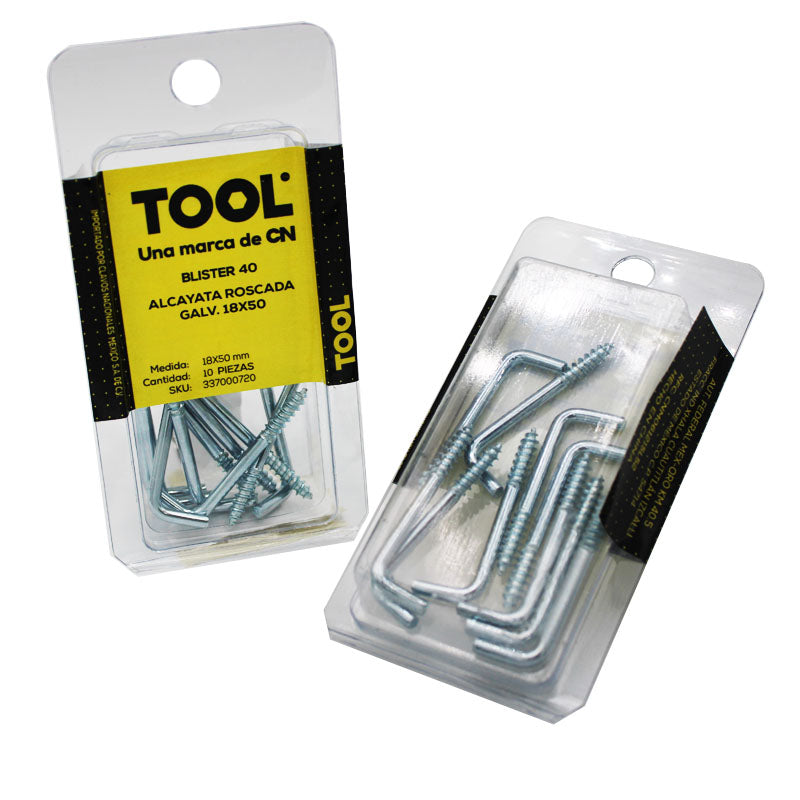 Blíster 40 Alcayata Roscada Galvanizada 18 X 50 Con 10 Piezas