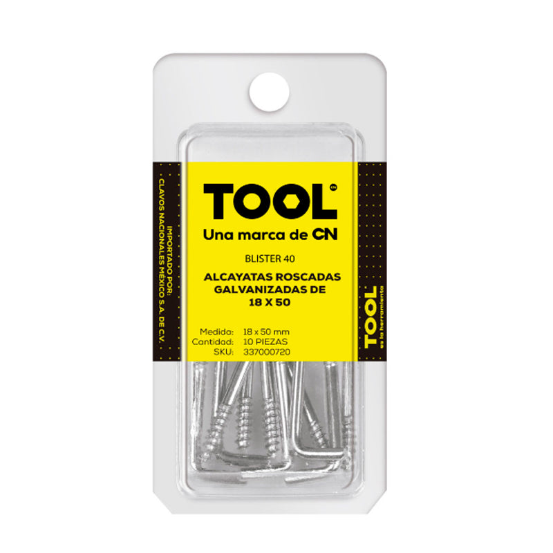 Para trabajos de instalación en madera y aglomerados. ? Blister 40 Alcayata Roscada Galv. 18 X 50 C/10 Pza