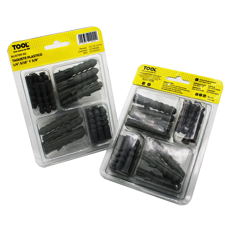 Blíster 50 Taquete Plástico 1/4, 5/16 Y 3/8 Con 24 Piezas