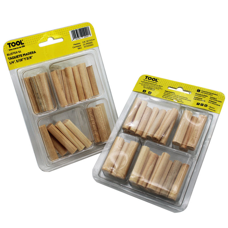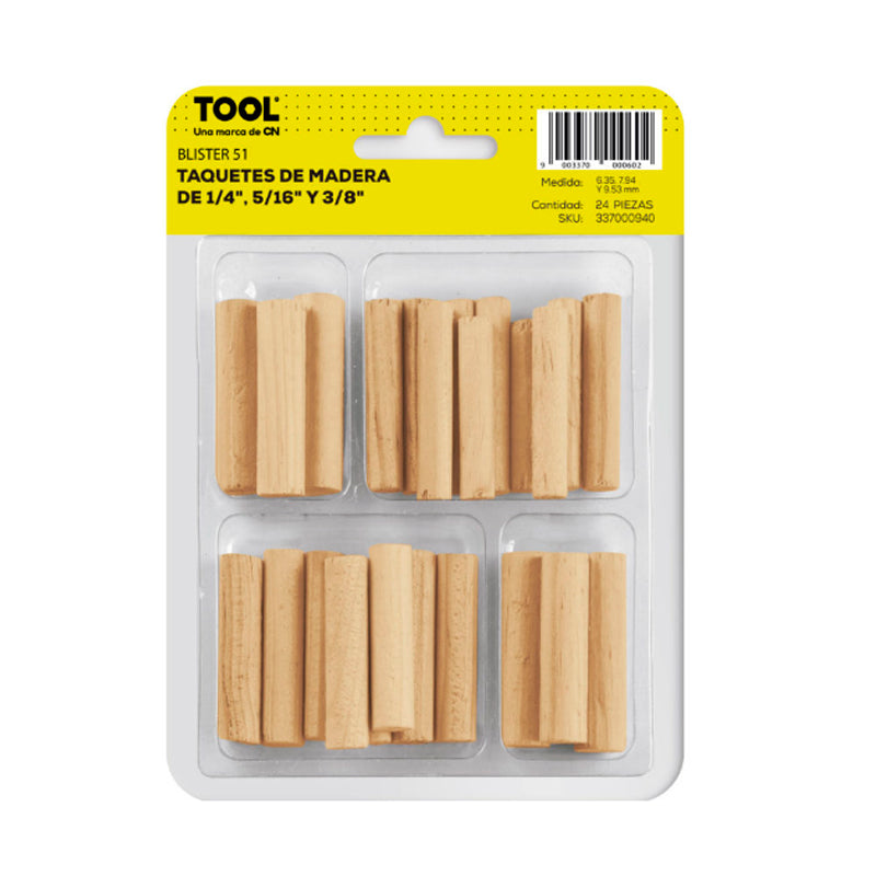 Blíster 51 Taquete Madera 1/4, 5/16 Y 3/8 Con 24 Piezas