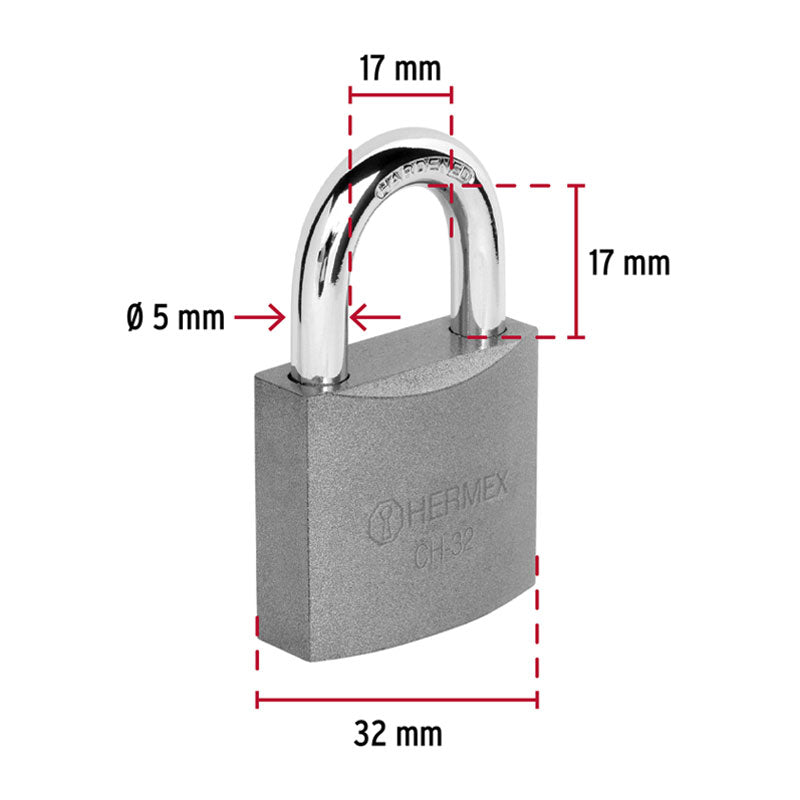 Título:Candado hierro 32 mm gancho std ch-32 hermex 43791