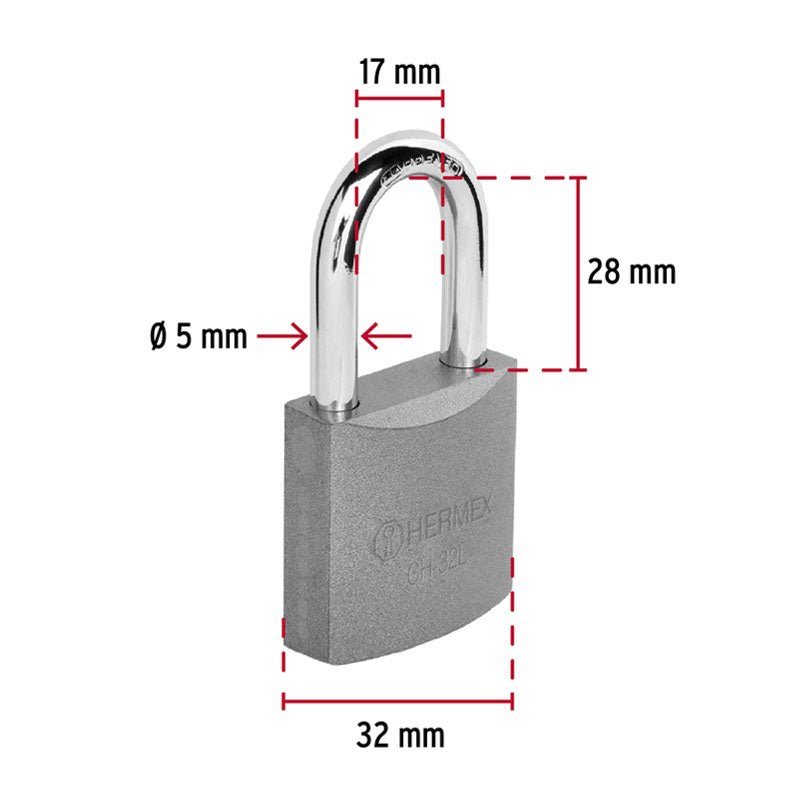 Título:Candado hierro gancho largo ch-32l hermex 43793
