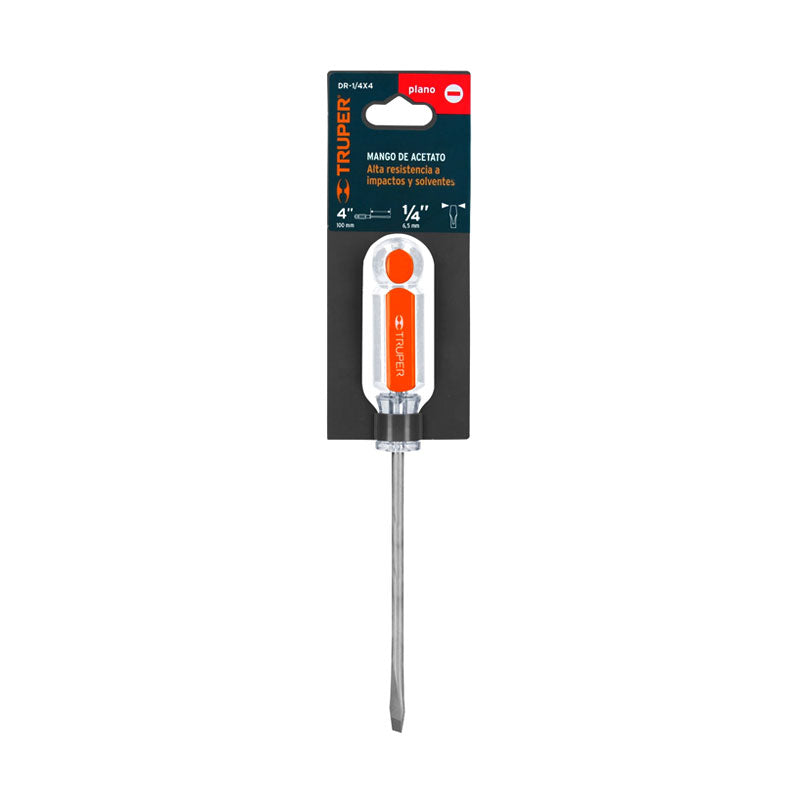 Desarmador plano 1/4" x 4" mango de acetato, Truper