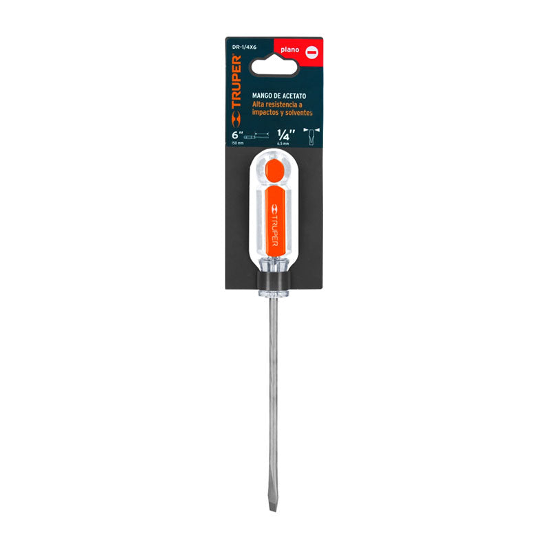 Desarmador plano 1/4" x 6" mango de acetato, Truper