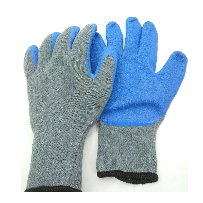 Revestido de látex de caucho natural de la construcción de la seguridad EPI guante de trabajo. Revestimiento integrado proporciona una alta transpiración y de palma de látex elástica proporciona una excelente grip. Alta flexibilidad y comodidad de uso. Muñeca tejida ayuda a evitar la suciedad y restos de entrar en el guante. Función puño elástico con un buen agarre en ambiente húmedo. Transpirable en la parte posterior, sin costuras. Útil en la industria petrolera, mecánica, industria química, minería y la industria pesada, industria del metal, trabajo en general.