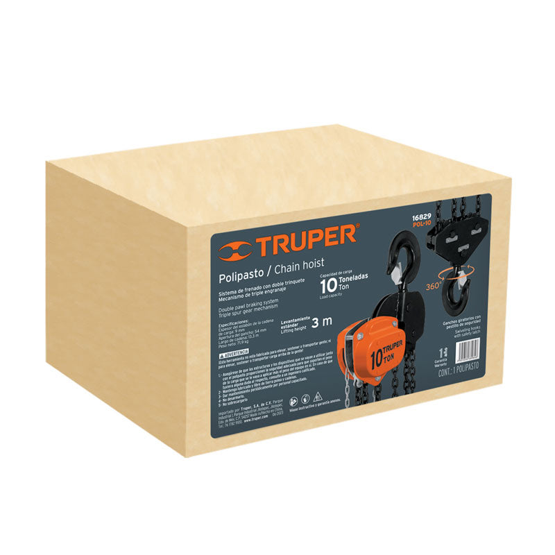 Polipasto industrial de cadena, 10 toneladas, 16829 Truper POL 10