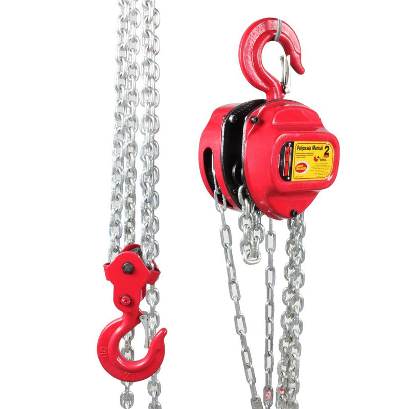 Polipasto manual ideal para mover o elevar cargas pesadas en bodegas, talleres mecánicos y almacenes. Cuenta con carcasa de acero, cadenas galvanizadas, alta resistencia al desgaste y a la corrosión, construcción robusta contra golpes externos, ganchos de acero forjado, sujeción ultra fuerte con cierres de seguridad y mecanismo de doble trinquete para uso eficiente.