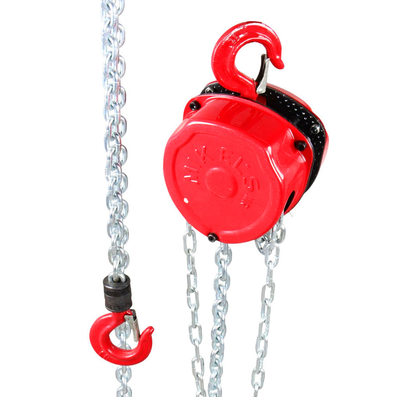 Polipasto manual ideal para mover o elevar cargas pesadas en bodegas, talleres mecánicos y almacenes. Cuenta con carcasa de acero, cadenas galvanizadas, alta resistencia al desgaste y a la corrosión, construcción robusta contra golpes externos, ganchos de acero forjado, sujeción ultra fuerte con cierres de seguridad y mecanismo de doble trinquete para uso eficiente.