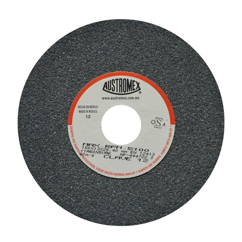 Rueda abrasiva gris de 6" x 1/2" x 1", para esmerilar, Austromex