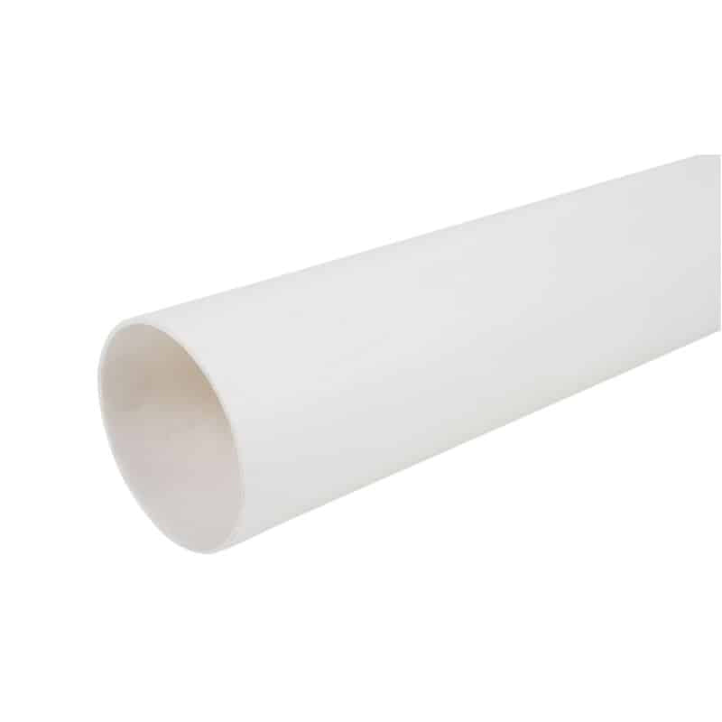 Tubo sanitario blanco, su uso es adecuado para realizar conexiones para desagüe, brinda un ajuste preciso sin fugas y resistencia a las fracturas por impacto, permite el desalojo de agua por gravedad, aguas residuales domésticas o industriales, pluviales y sistemas de ventilación.