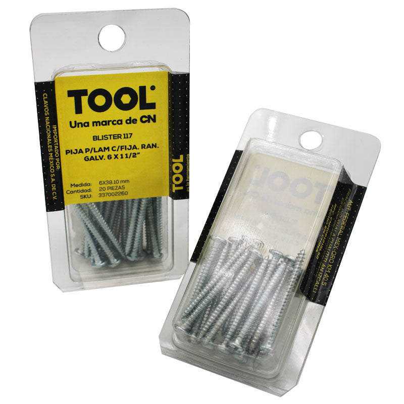 Para unir objetos metálicos, madera, fibra de vidrio y plástico. ? Blister 117 Pija P/Lam C/Fija.Ran.Galv.6X1.1/2 20P