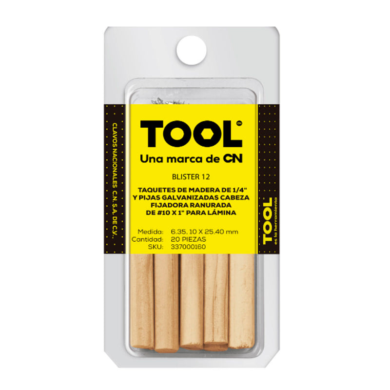 Blíster 12 Taquete Madera 1/4" Y Pija #10X1 Con 20 Piezas