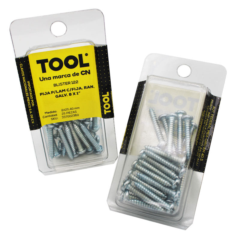 Para unir objetos metálicos, madera, fibra de vidrio y plástico. ? Blister 122 Pija P/Lam C/Fija.Ran.Galv.8X1 C/25Pz