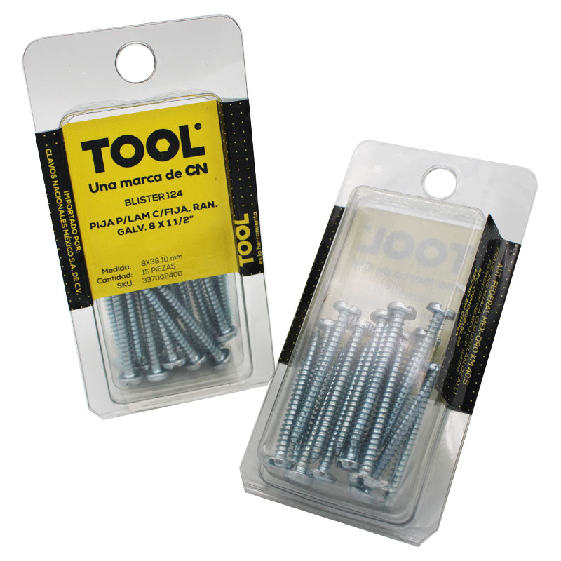 Para unir objetos metálicos, madera, fibra de vidrio y plástico. ? Blister 124 Pija P/Lam C/Fija.Ran.Galv.8X1.1/2 15P