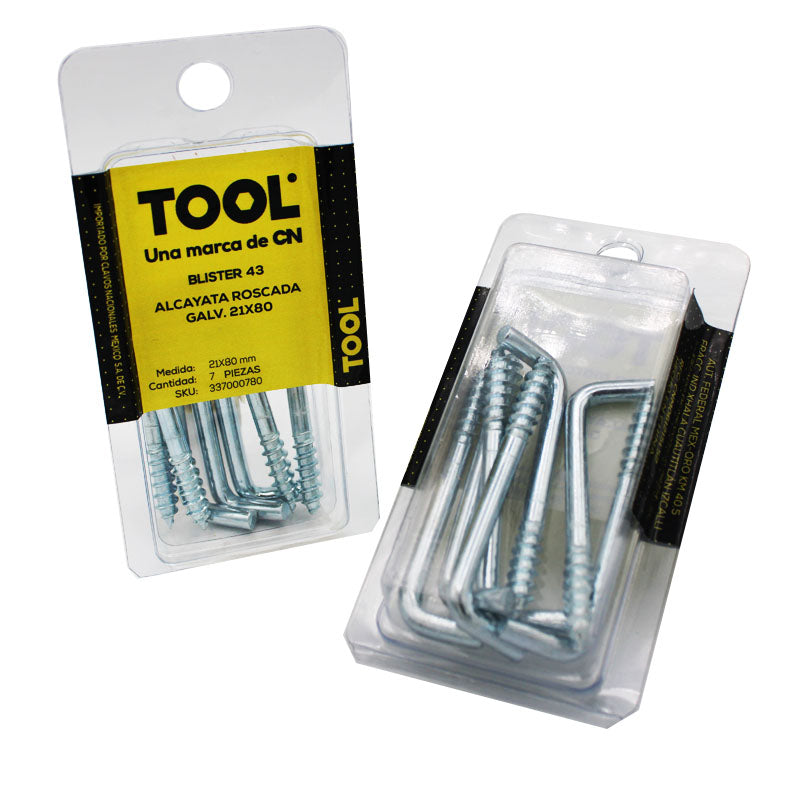 Blíster 43 Alcayata Roscada Galvanizada 21 X 80 Con 07 Piezas