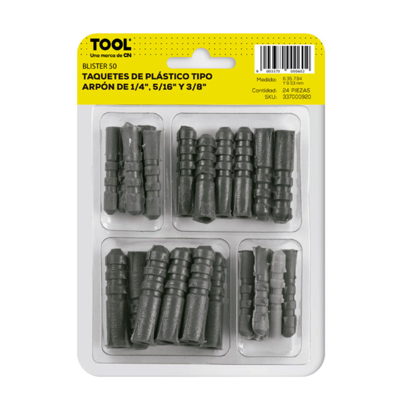 Industrial. ? Blister 50 Taquete Plastico 1/4,5/16 Y 3/8 C/24Pz