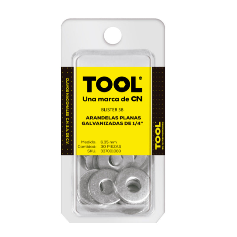 Blíster 58 Arandelas Plan.Galvanizada 1/4" Con 30 Piezas