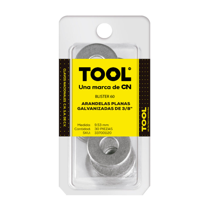 Blíster 60 Arandelas Plan.Galvanizada 3/8" Con 30 Piezas