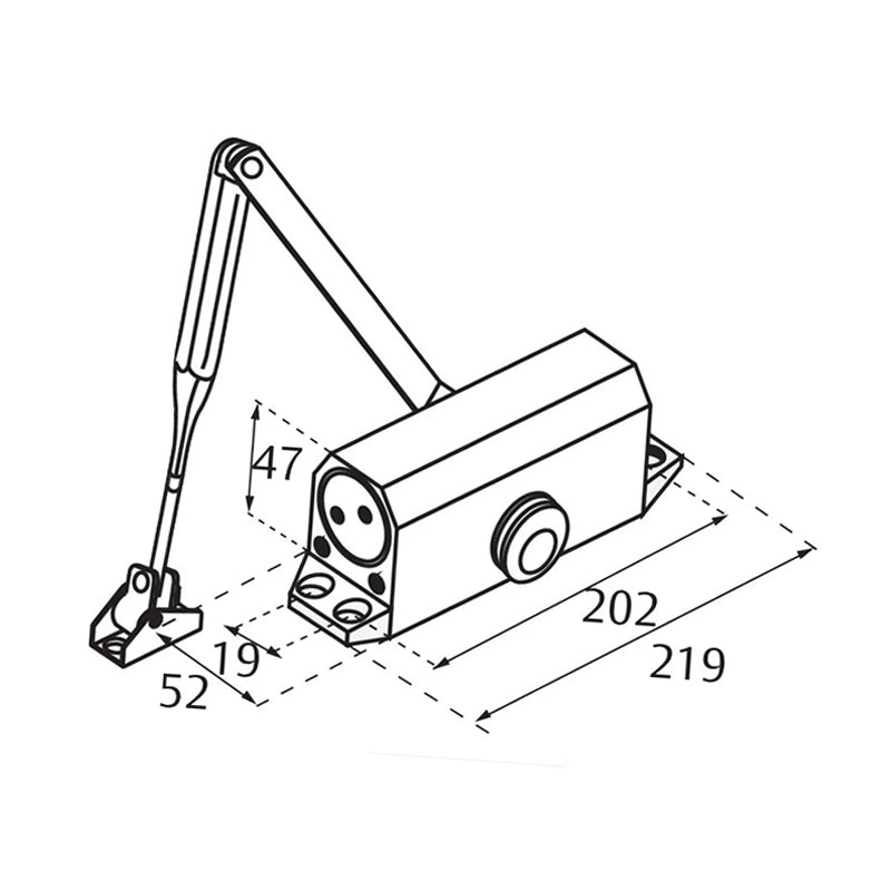 Cierrapuertas para puertas de abatir metálicas y de madera de 40 kg hasta 80 kg.