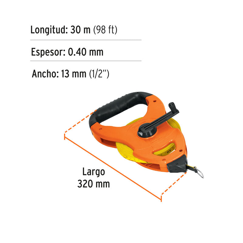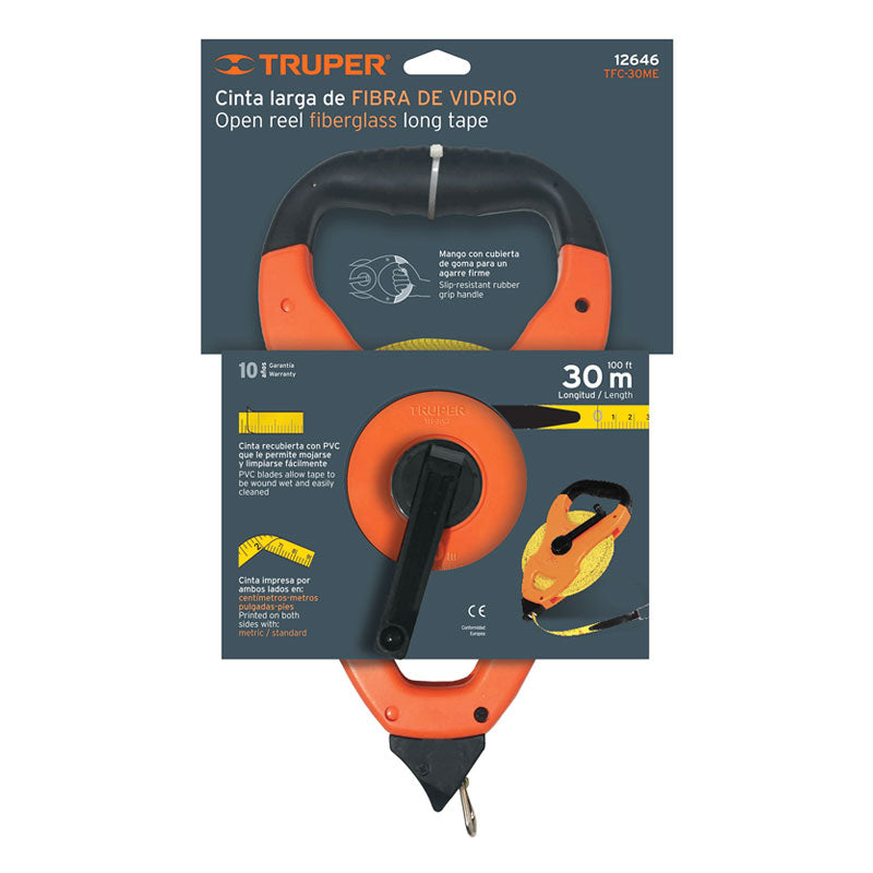 Cinta larga 30 m de fibra de vidrio, tipo cruceta, Truper
