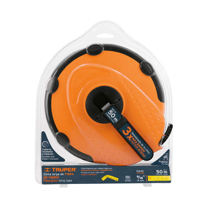Cinta larga 50 m de fibra de vidrio, carcasa plástica, Truper