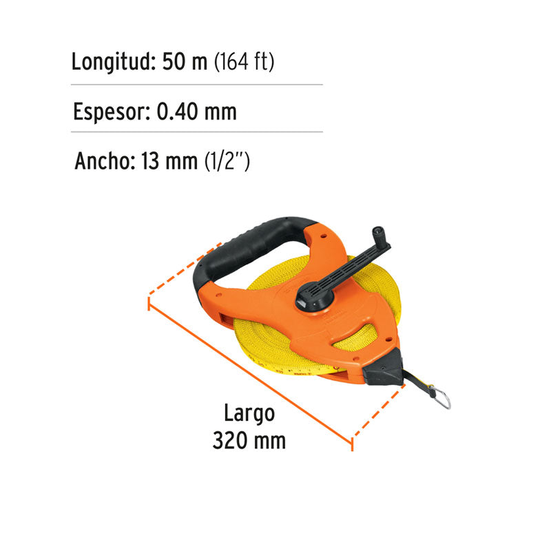 Cinta larga 50 m de fibra de vidrio, tipo cruceta, Truper
