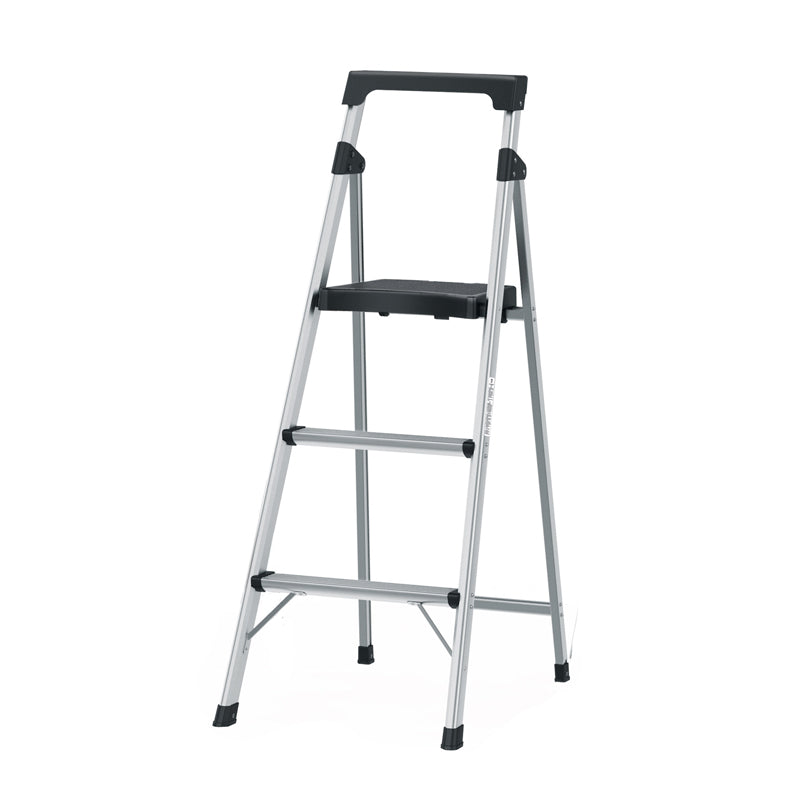 Fabricada con estructura de aluminio ligera y resistente, esta escalera es plegable para facilitar su almacenamiento y transporte. Cuenta con peldaños antiderrapantes de aluminio, un peldaño superior grande y tacones plásticos que mejoran la estabilidad. El barandal alto proporciona mayor seguridad al subir y bajar, mientras que el sistema de bloqueo evita aperturas accidentales durante su uso.