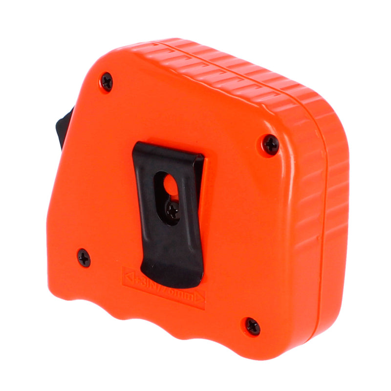 Clip metálico en la parte posterior para sujetar a cinturones u otras prendas.