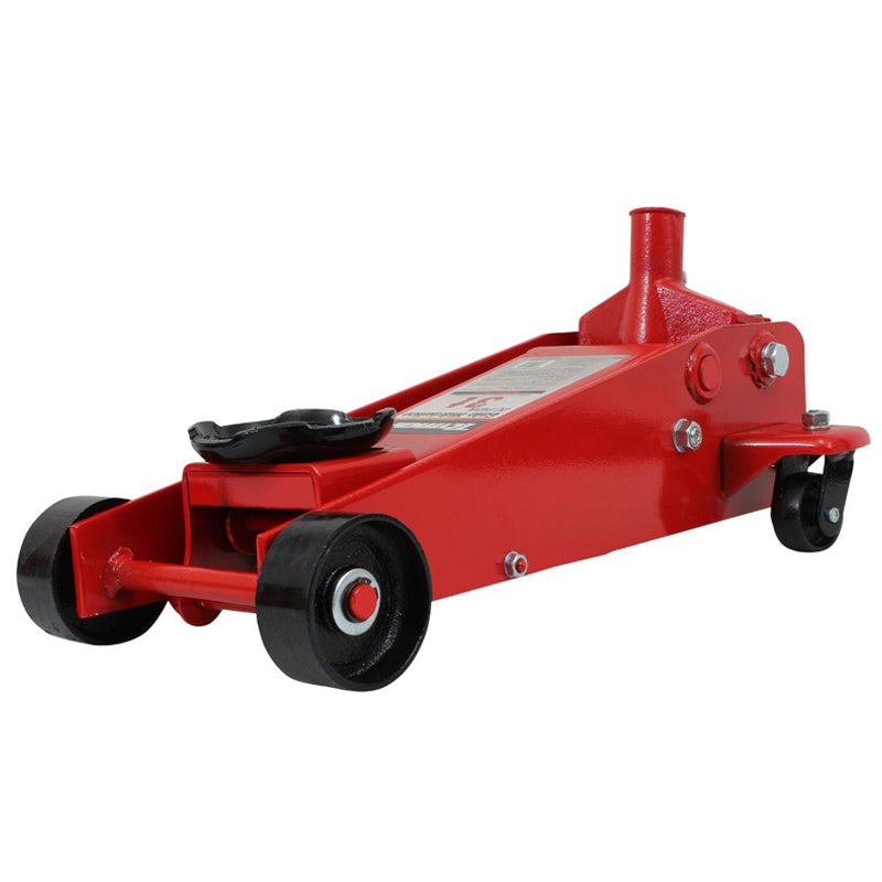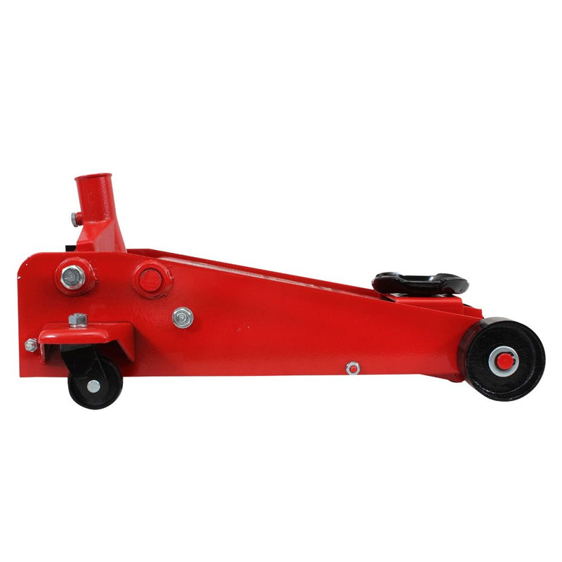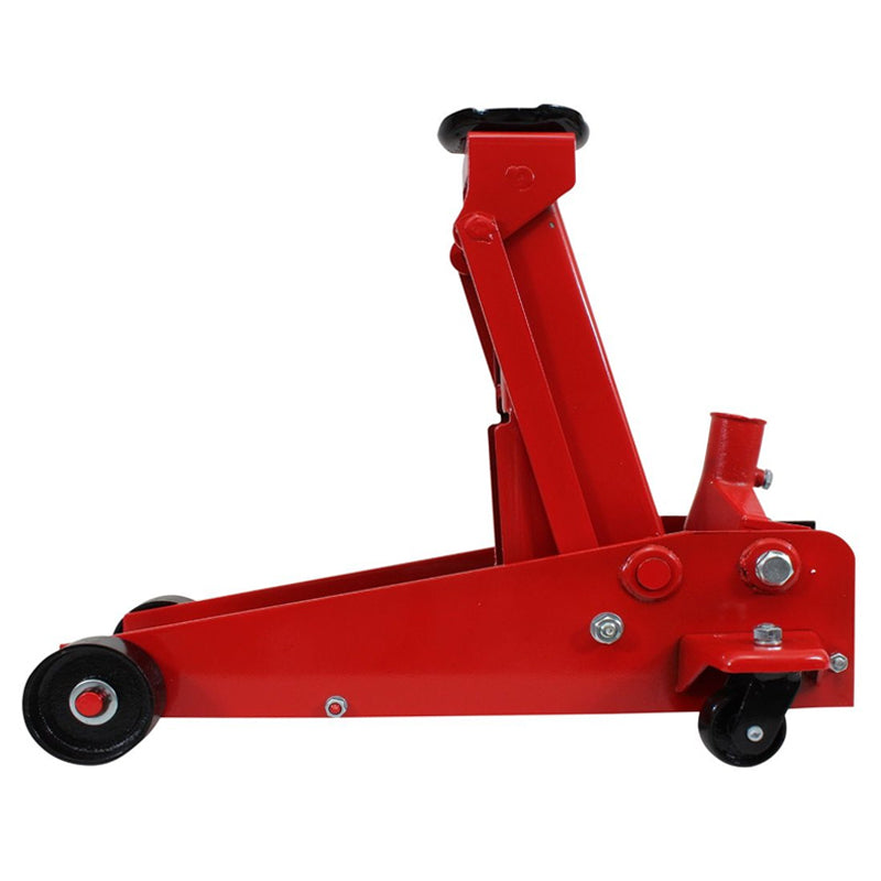 Gato hidráulico de patín con estructura fabricada en metal y cuerpo de acero reforzado, empleado en talleres mecánicos, transportistas o vulcanizadoras, etc.