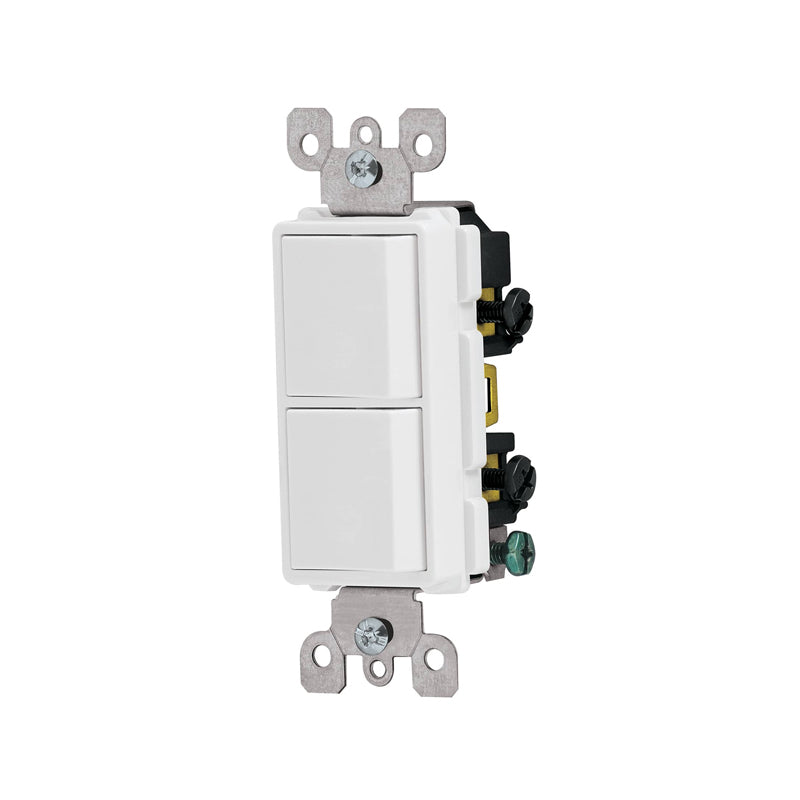 Interruptor dúplex, es un dispositivo eléctrico que permite el encendido y apagado de cualquier tipo de carga, la carga generalmente es un circuito de iluminación compuesto por uno o varios focos o luminarias. Posee dos botones de poliuretano.