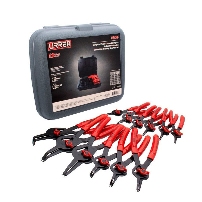 Juego de 12 pinzas para anillos de retención convertibles con mariposa, 360B Urrea