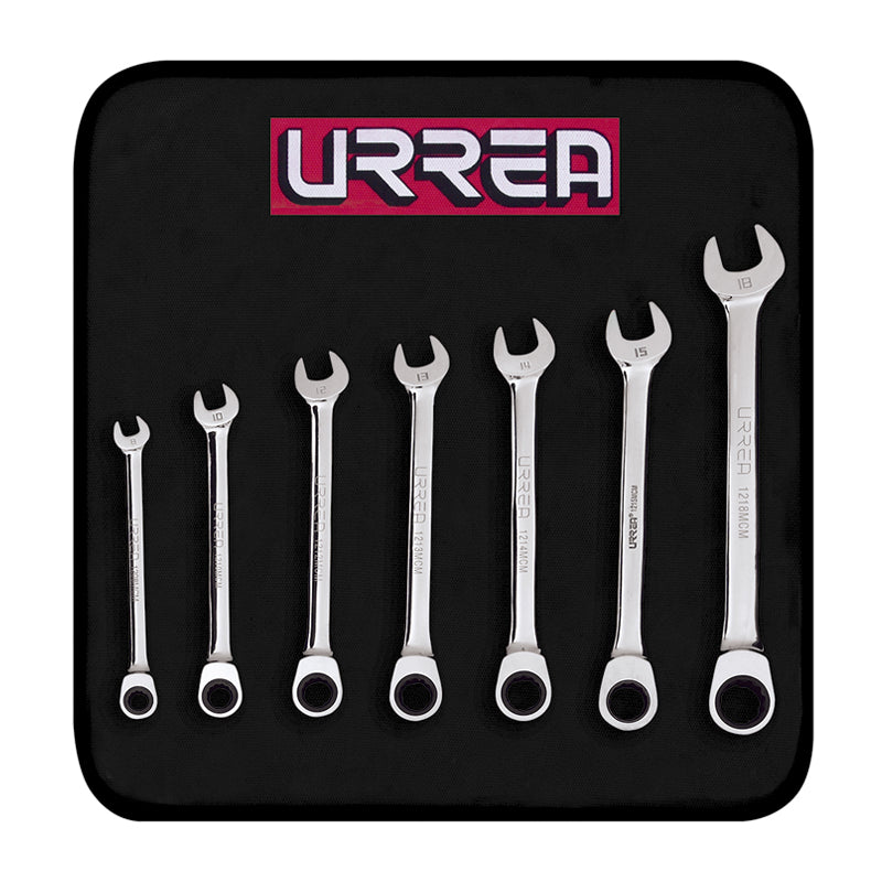 Juego de 7 llaves combinadas de matraca métricas, 1200MCM Urrea