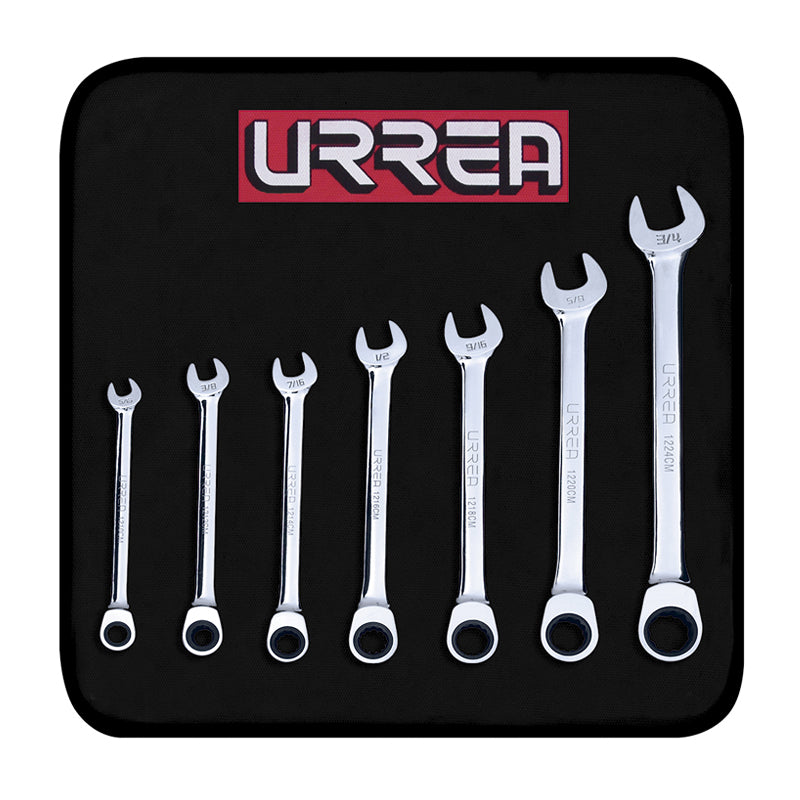 Juego de 7 llaves combinadas con matraca, en pulgadas, Urrea