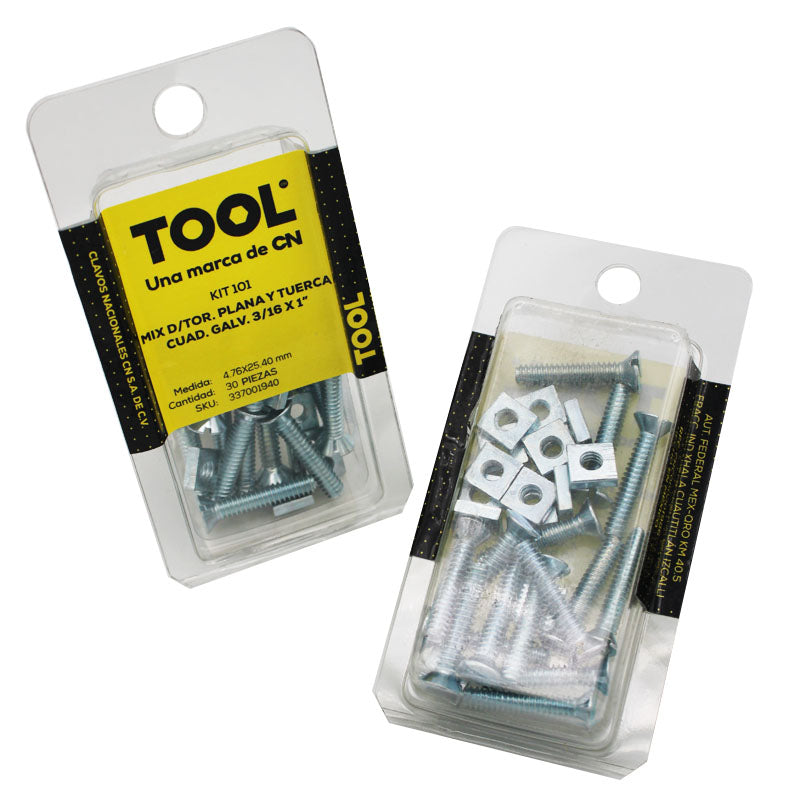 Kit 101 Mix De Tornillería Cabeza Plana Y Tuerca Cuadrada Galvanizada