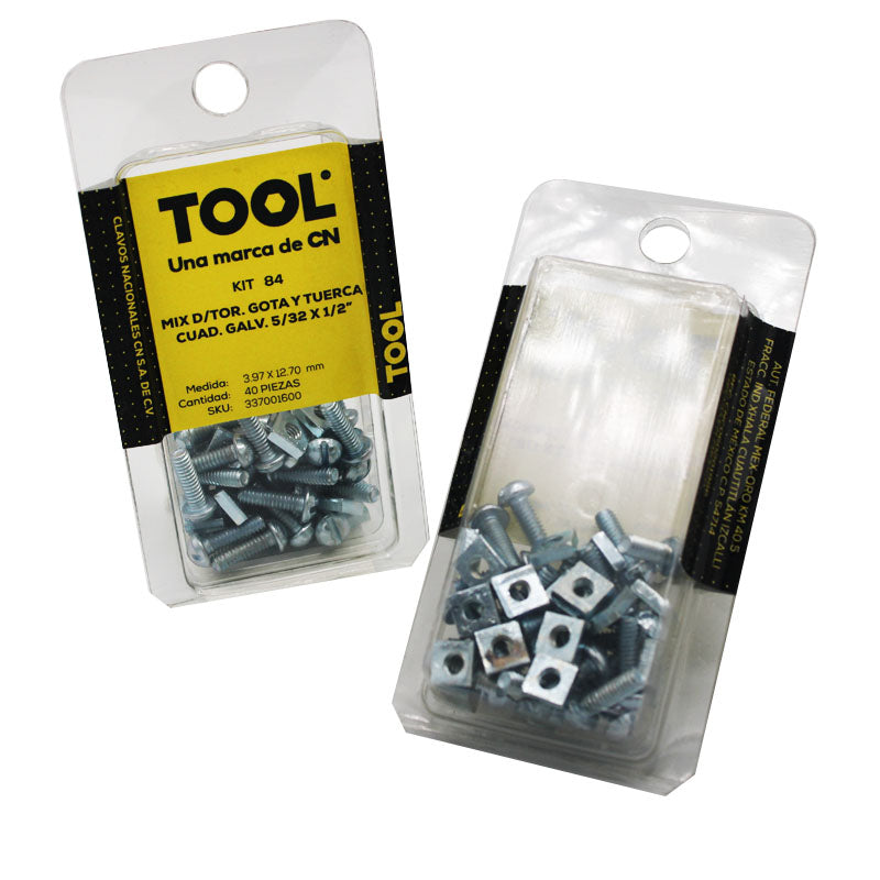 Kit 84 Mix De Tonillería Cabeza Gota Y Tuerca Cuadrada Galvanizada 5/32X1/2" Con 40 Piezas