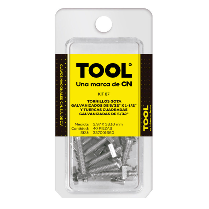 Kit 87 Mix De Tonillería Cabeza Gota Y Tuerca Cuadrada Galvanizada 5/32X1"