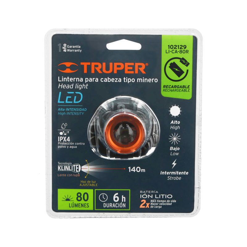 Título: 102129 Linterna Minero Rec.80 Lm Li-Ca-80r Truper Xcnp