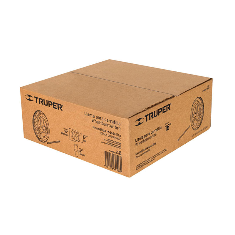 Llanta completa neumática lisa 16", incluye eje y baleros, Truper