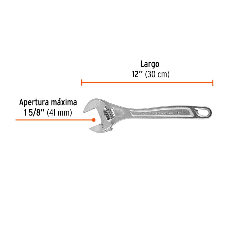 Llave Ajustable (Perico) 12" Profesional Cromada, Expert
