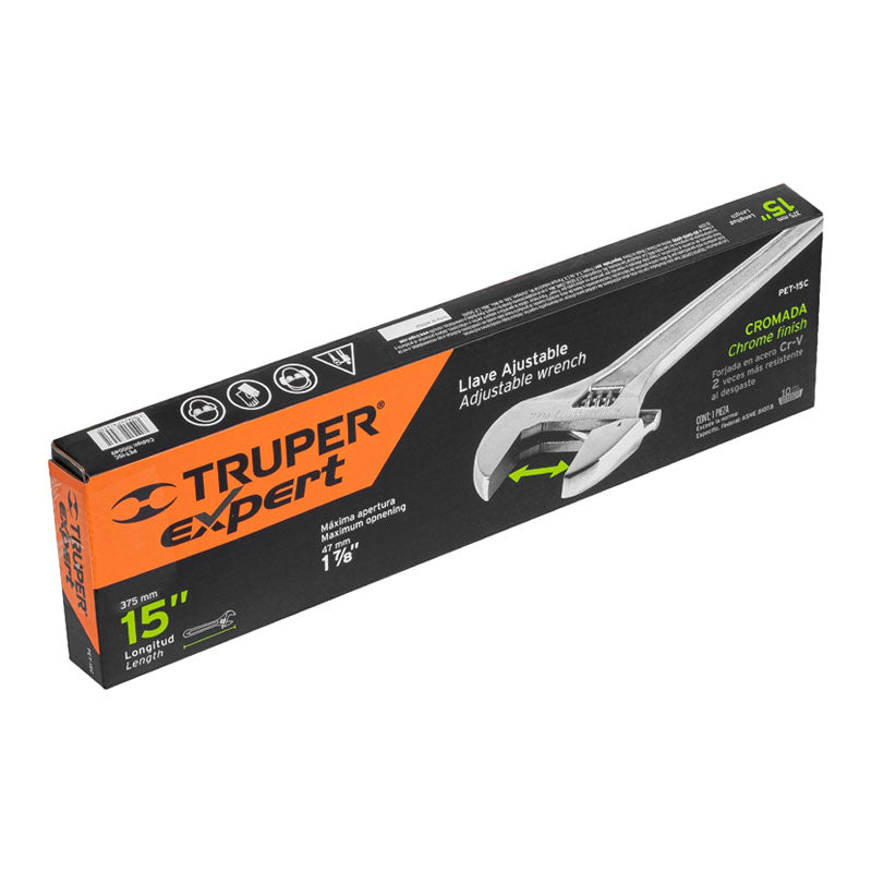 Llave Ajustable (Perico) 15" Profesional Cromada, Truper Expert