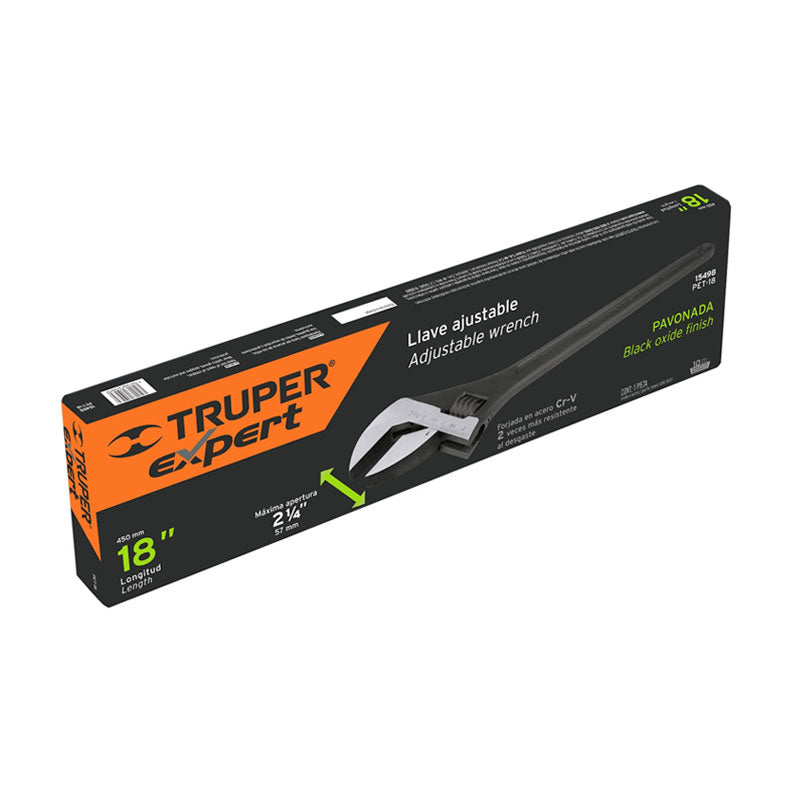 Llave Ajustable (Perico) 18" Profesional Pavonada, Truper Expert