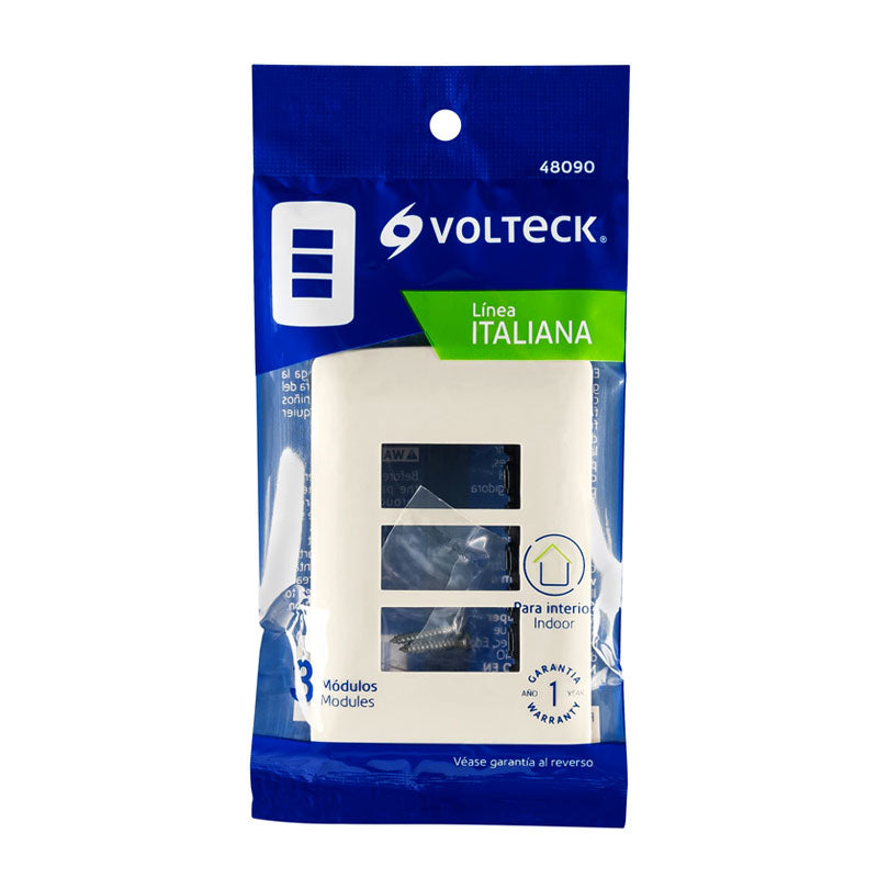 Placa 3 módulos de abs, línea Italiana, color marfil, Volteck